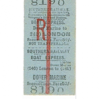 Travel Ticket, SR, Dover Marine - London, Boat Express, Serial No 8190