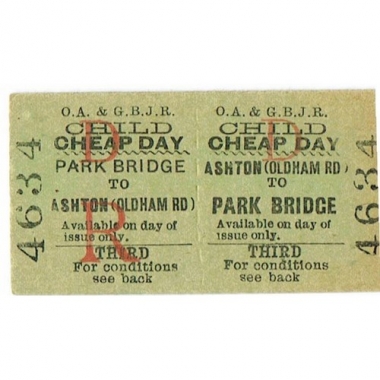 Travel Ticket, OA & GBJR, Ashton (Oldham Rd) - Park Bridge, Serial No 4634