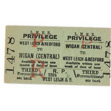 Travel Tickets, LNER, Wigan (Central) - West Leigh & Bedford, Serial No 1478