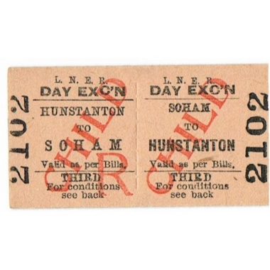 Travel Tickets, LNER, Soham - Hunstanton, Serial No 2102