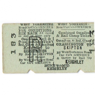 Travel Ticket, LMS/West Yorkshire Road Car Co, Grassington - Skipton - Keighley, Serial No 183