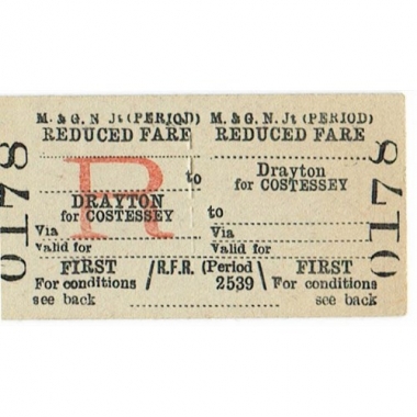 Travel Ticket, M & GN Joint, Drayton for Costessey - , Serial No 0178
