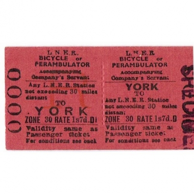 Travel Ticket, LNER, York - , One Bicycle or Perambulator, Specimen, Serial No 0000
