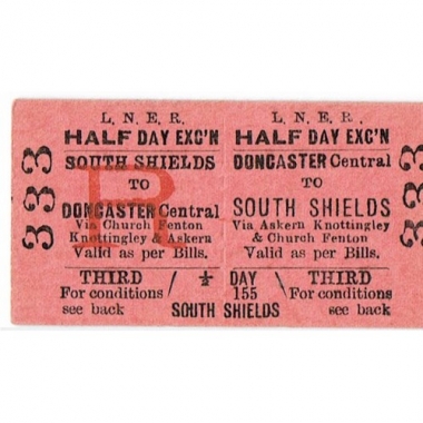 Travel Ticket, LNER, Doncaster Central - South Shields, Serial No 333