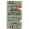 Railway Ticket, SR, Charing Cross - Hayes, Shaftesbury Society and Ragged School Union, Juvenile under 16 years, Serial No 0113