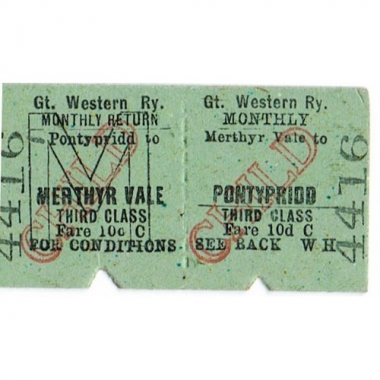 Travel Ticket, GWR, Merthyr Vale - Pontypridd, Serial No 4416