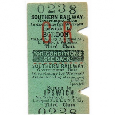 Travel Ticket, SR, Bordon - Ipswich, Serial No 0238