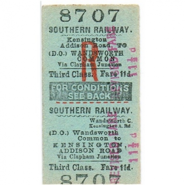 Travel Ticket, SR, Wandsworth Common - Kensington, Serial No 8707