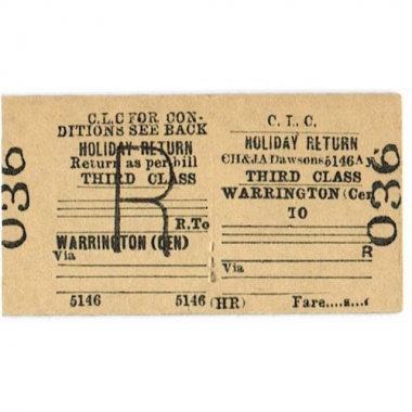 Travel Ticket, CLC, Warrington (Central) - , Serial No 036