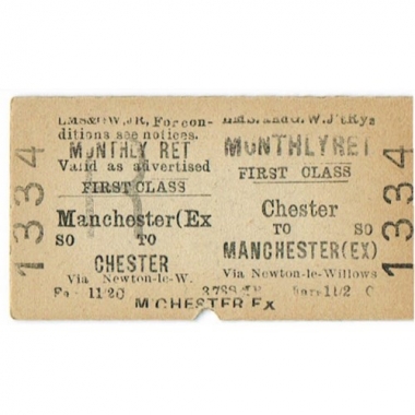 Travel Ticket, LMS & GW, Chester - Manchester (Exchange), Serial No 1334