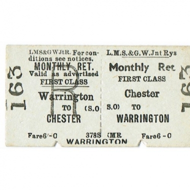 Travel Ticket, LMS & GW, Chester - Warrington, Serial No 163