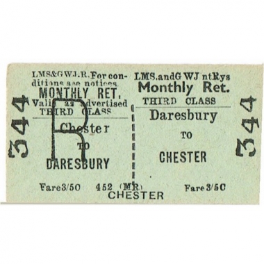 Travel Ticket, LMS & GW, Daresbury - Chester, Serial No 344