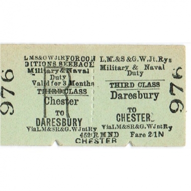 Travel Ticket, LMS & GW, Daresbury - Chester, Serial No 976