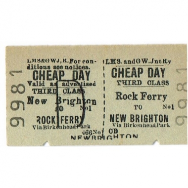 Travel Ticket, LMS & GW, Rock Ferry - New Brighton, Serial No 9981