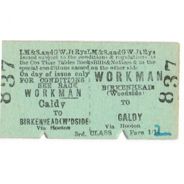 Travel Ticket, LMS & GW, Birkenhead (Woodside) - Caldy, Serial No 837