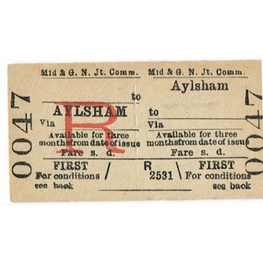 Travel Ticket, Mid & GN, Aylsham - , Serial No 0047