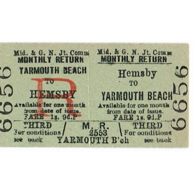 Travel Ticket, Mid & GN, Hemsby - Yarmouth Beach, Serial No 6656