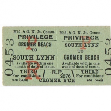 Travel Ticket, Mid & GN, South Lynn - Cromer Beach, Serial No 0453