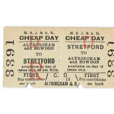 Travel Ticket, MSJ & AR, Stretford - Altrincham & Bowdon, Serial No 3391