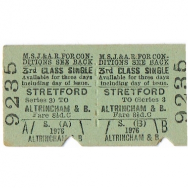 Travel Ticket, MSJ & AR, Stretford - Altrincham & Bowdon, Serial No 9235
