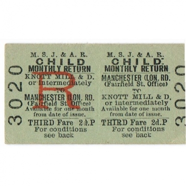 Travel Ticket, MSJ & AR, Manchester (London Road) - Knott Mill & Deansgate, Serial No 3020