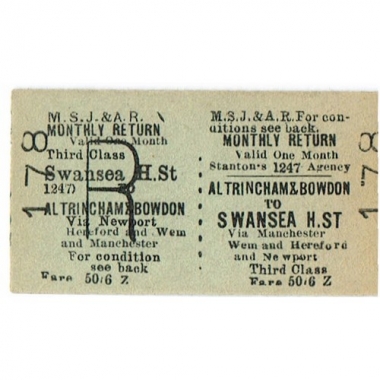 Travel Ticket, MSJ & AR, Altrincham & Bowdon - Swansea High St., Serial No 178