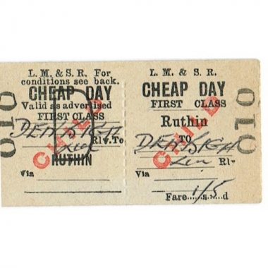 Travel Ticket, LM&SR, Ruthin - Denbigh, Serial No 010