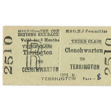 Travel Ticket, Mid & GN, Clenchwarton - Terrington, Serial No 2510