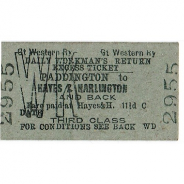 Travel Ticket, GWR, Daily Workman's Excess Ticket, Paddington - Hayes & Harlington, Serial No 2955