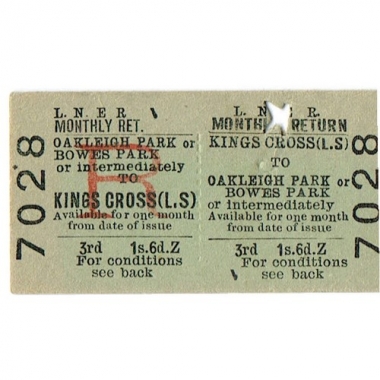 Travel Ticket, LNER, King's Cross - Oakleigh, Serial No 7028