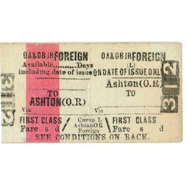 Travel Ticket, OA&GBJ Ry, Foreign, Ashton (Oldham Road) - , Serial No 312