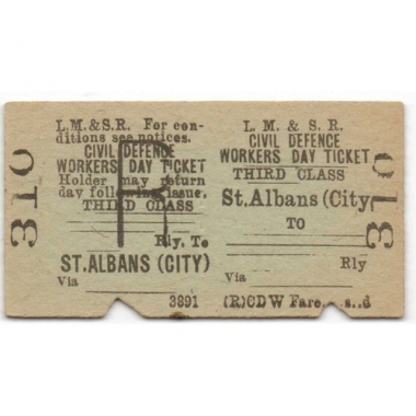 Railway Tickets, LM&SR, St Albans (City) - , Civil Defence Workers Day Ticket, Serial No 310