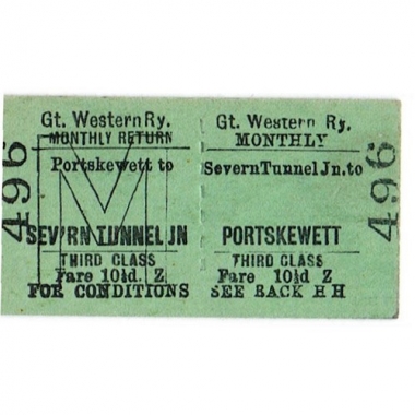 Travel Ticket, GWR, Severn Tunnel Jn - Portskewett, Serial No 496