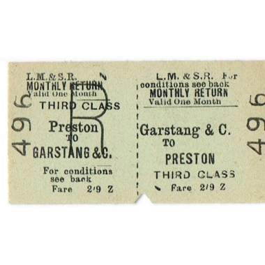 Travel Ticket, LM&SR, Garstang & C. - Preston, Serial No 496