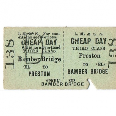 Travel Ticket, LM&SR, Preston - Bamber Bridge, Serial No 138