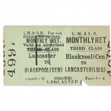 Travel Ticket, LM&SR, Blackpool (Cen) - Lancaster (LMS), Serial No 4997