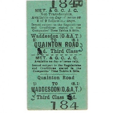 Travel Ticket, Met & G.C., Waddesdon (O.&A.T.) - Quainton Road, Serial No 184
