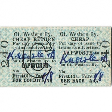 Travel Ticket, GWR, Lapworth - Knowle, Serial No 240