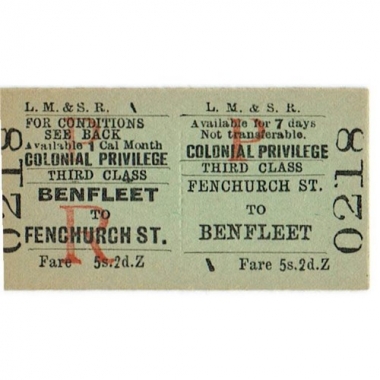 Travel Ticket, LM&SR, Fenchurch St. - Benfleet, Serial No 0218
