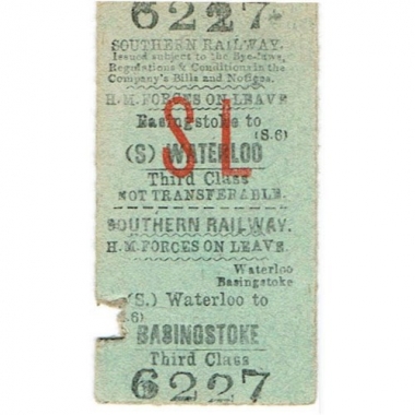 Travel Ticket, SR, Basingstoke - Waterloo, Serial No 6227