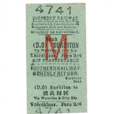 Travel Ticket, SR, Bank - Surbiton, Serial No 4741