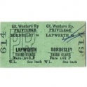 Travel Ticket, GWR, Lapworth - Bordesley, Serial No 614