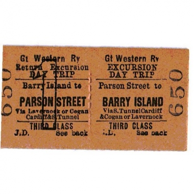 Travel Ticket, GWR, Parson Street - Barry Island, Serial No 650