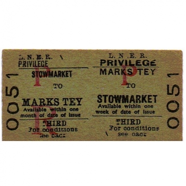Travel Ticket, LNER, Marks Tey - Stowmarket, Serial No 0051