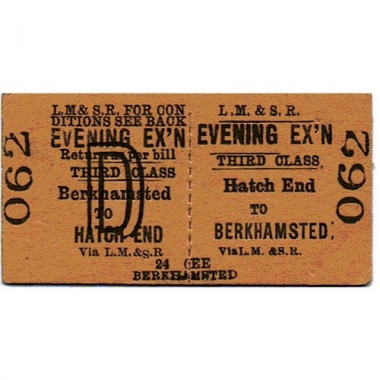 Travel Ticket, LM&SR, Hatch End - Berkhamsted, Serial no 062