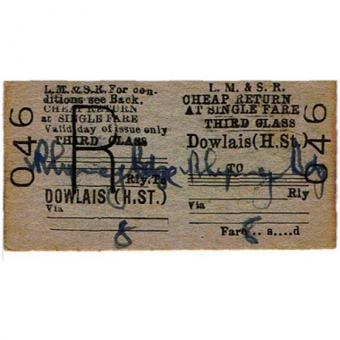 Travel Ticket, LM&SR, Dowlais (High Street) - , Serial no 046