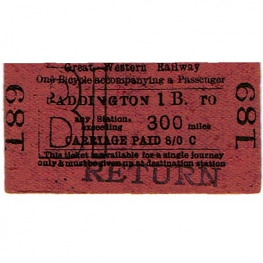 Travel Ticket, GWR, Paddington, One Bicycle, Serial No 189