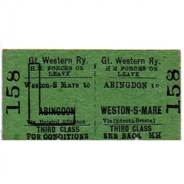 Travel Ticket, GWR, Monthly Return, Abingdon - Weston-S-Mare, Serial no 158
