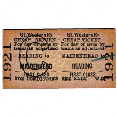 Travel Ticket, GWR, Maidenhead - Reading, Serial no 1921