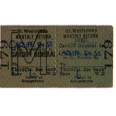 Travel Ticket, GWR, Cardiff General - Cardiff Queen Street, Serial no 179
